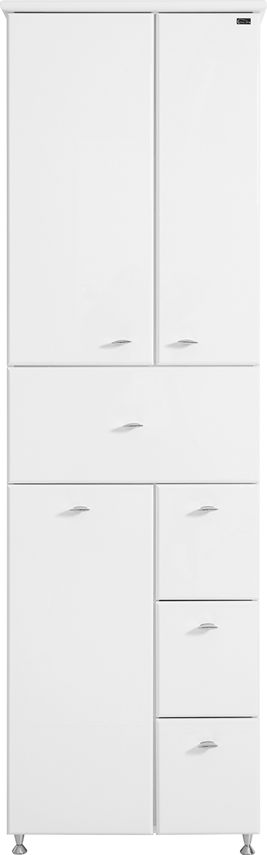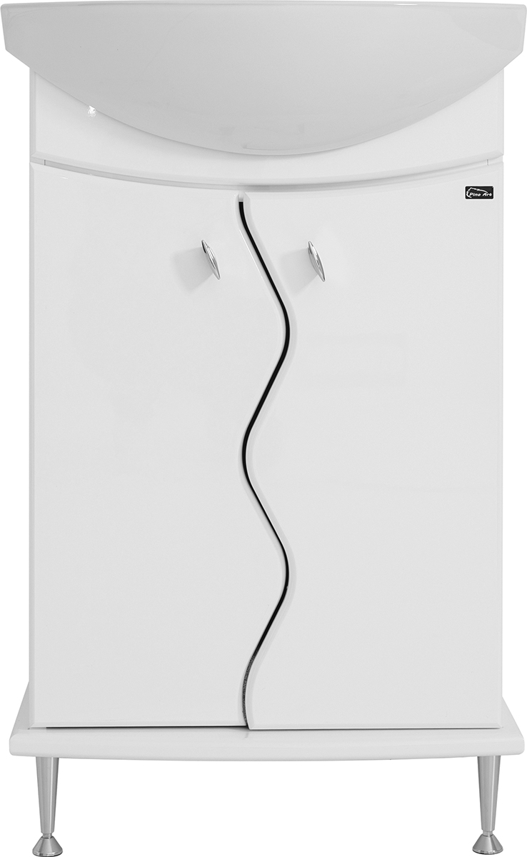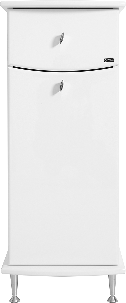 The MOND series is made of veneered MDF boards coated in white. The handles are chrome-plated with a high-gloss finish, while the sink is ceramic.